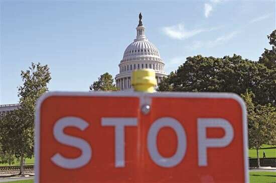 ■10月1日在美国华盛顿拍摄的美国国会大厦和交通标志。新华社发