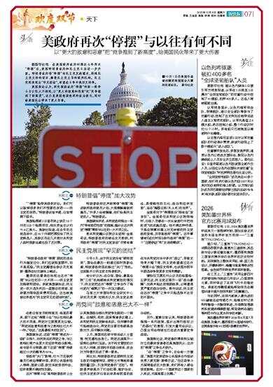 美国舆论认为,两党围绕政府“停摆”的新一轮争斗与以往大不相同,以“更大的敌意和恶意”把“党争推到了新高度”,这凸显美国愈演愈烈的政治极化,同时给美国民众带来了更大伤害。