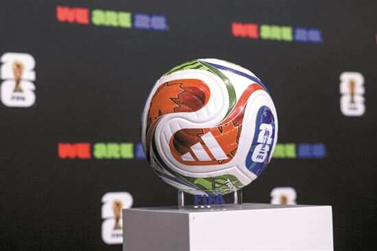 据介绍,“三重浪”(TRIONDA)一词源自西班牙语,寓意为三道波浪,其名称与设计象征着加拿大、墨西哥和美国三国首次携手举办世界杯的历史性时刻。足球颜色上整体采用红、绿、蓝三色设计,并镶嵌枫叶、雄鹰与星星等标志性图案。金色细节则向世界杯奖杯致敬。