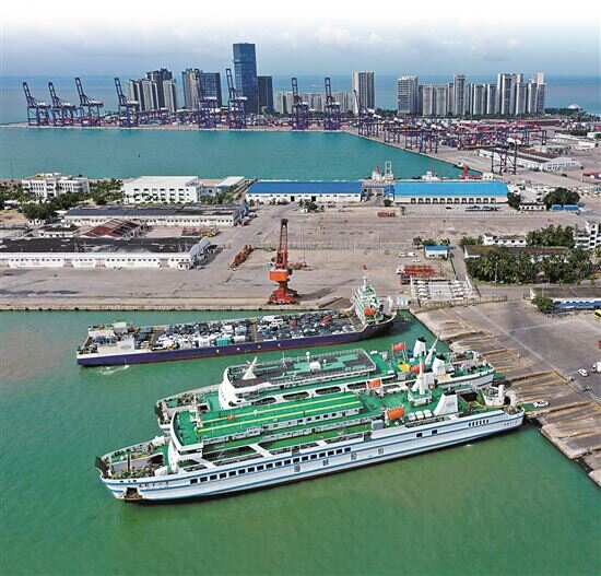 ■10月4日,在海南省海口市秀英港,客滚船在停运前装卸乘客、车辆。