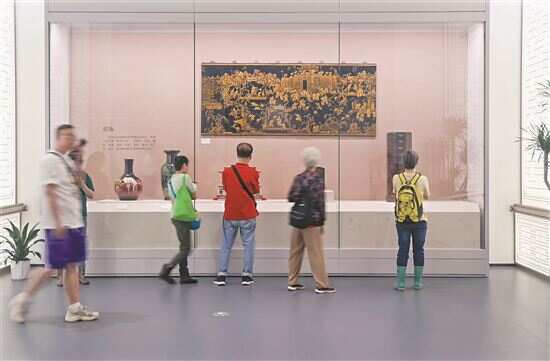■在广东省非遗馆,游客通过展品了解漆器髹饰传统工艺。