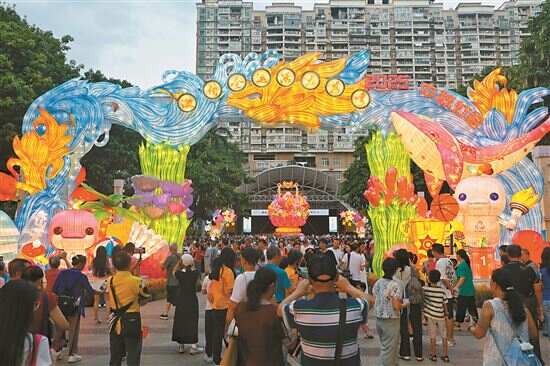 ■国庆假期,广州文化公园迎来大量市民观赏中秋灯会。新快报记者 毕志毅/摄