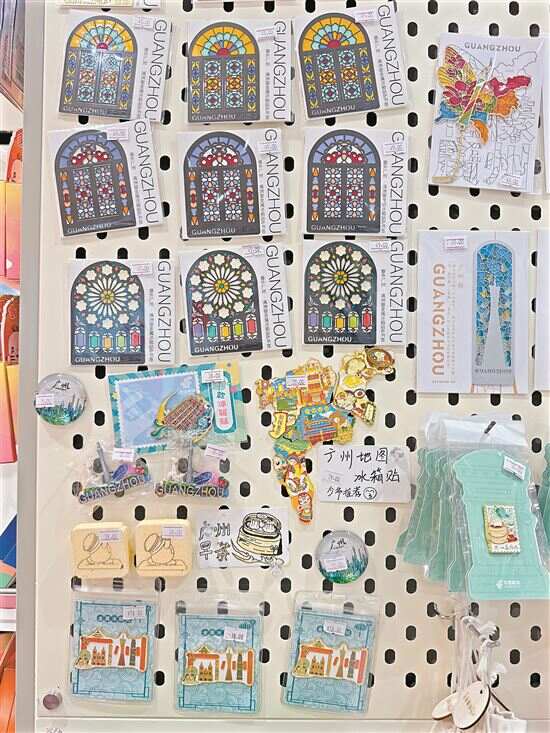 同样受欢迎的还有各式岭南文化元素的冰箱贴——“包租婆”“鸡公榄”“一盅两件”“西关花窗”……这些多巴胺配色的设计,让本土文化变得可触摸、可收藏。