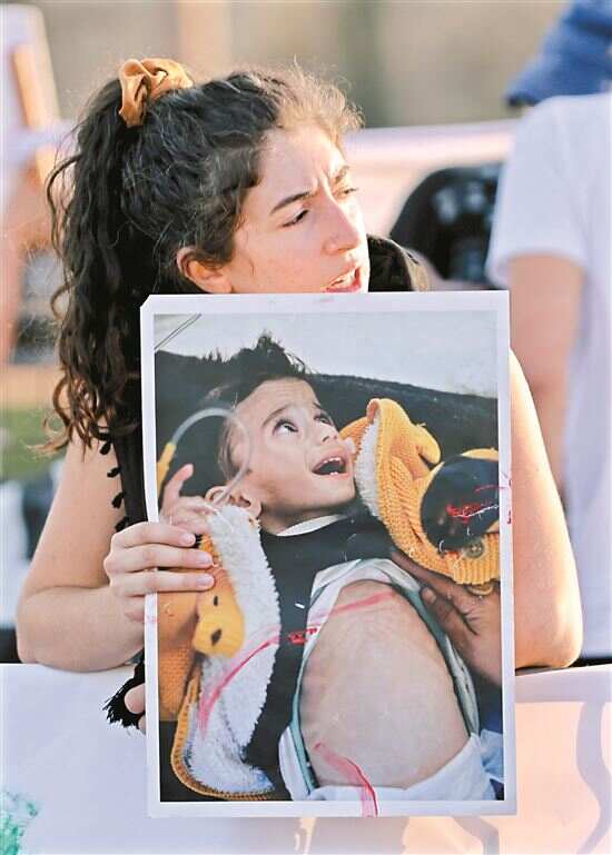 ■10月3日,一名女子举着加沙儿童海报在耶路撒冷参加游行集会,要求政府迅速在加沙地带实现停火。新华社发