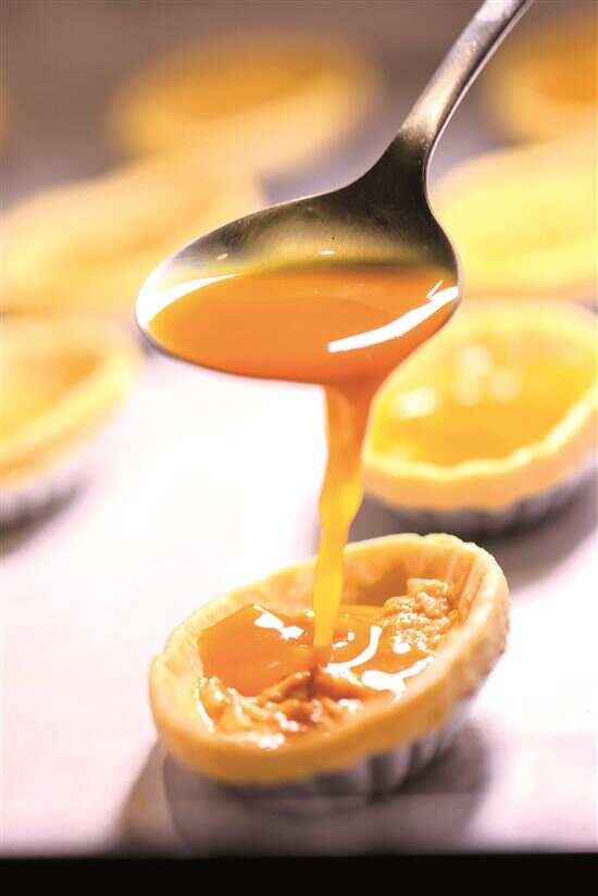 ■蟹粉咸蛋挞制作过程。
