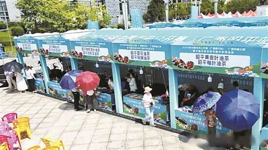 “借助龙舟赛人气,我们的猕猴桃每天能卖1000斤!”广西将军峰茶业集团员工黎雪燕的话道出了商家心声。赛事期间,政务服务中心前广场上95个展位组成“供销矩阵”,将军峰、鹊鸣春等本土茶企携绿茶、红茶、六堡茶亮相,玉林、梧州等地名特优产品汇聚成“农产品矩阵”,油茶、艾叶糍等特色美食香气四溢。