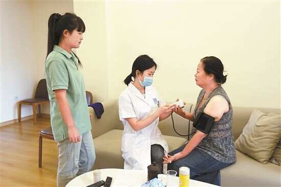 ■健康管家在为老人测量血压。