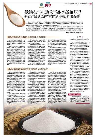 医学家是如何发现低钠盐在控血压方面的“助攻”效果的?冯颖青介绍,追溯“低钠盐与高血压疾病”的相关研究,以北京大学临床研究所专家武阳丰教授的两项发表在医学顶刊的论文最为知名。