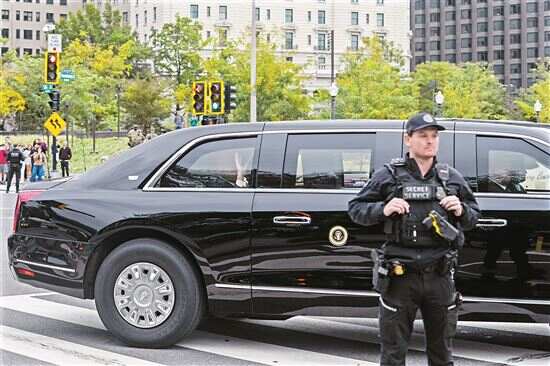 ■10月12日,在美国首都华盛顿,美国总统特朗普乘车离开白宫,启程前往中东。新华社发