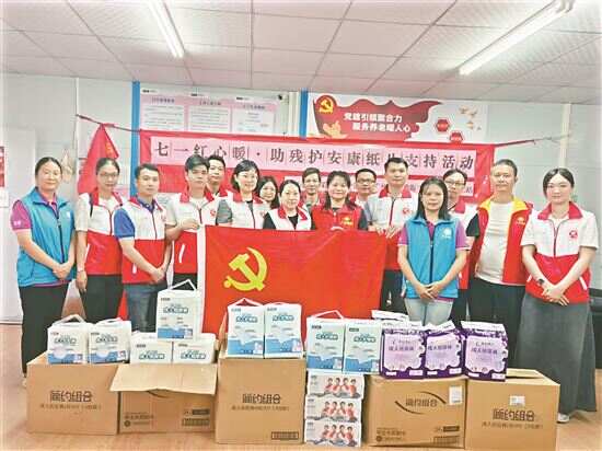 2023年,广州福彩携手一线从业人员成立了福彩志愿服务队,致力于从“小切口”入手,解决民生保障“大问题”,深入一线为困难群众纾困解难,推动责任彩票建设落地为“服务民生”的实践行动。截至目前,志愿服务队已开展了残障人士宜居便行微项目改造、“一碗拉面”慰问困难群众微项目、环卫工人送清凉“微心愿”以及为长者安装紧急呼叫铃守护安全行动等一批暖心活动,帮助解决了困难群众的急难愁盼问题。今年7月,志愿服务队再次联合黄埔区九佛街社工站党支部、枫下村党委,开展“七一红心暖 助残护安康”活动,通过精准匹配需求、党员认领“微心愿”的方式,为失能家庭送上日常护理物资,将福彩的温暖和责任送到群众身边。