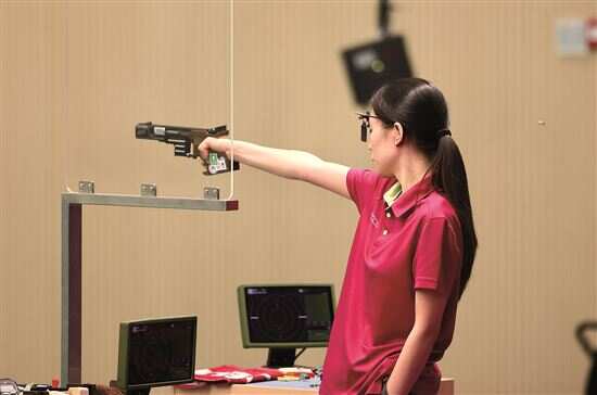 随后,女子25米手枪决赛紧接着进行。经过50枪击发,28岁的山西选手陈妍夺得冠军。这是陈妍第一次拿到全运会金牌,也是山西射击队在本次全运会的首金。
