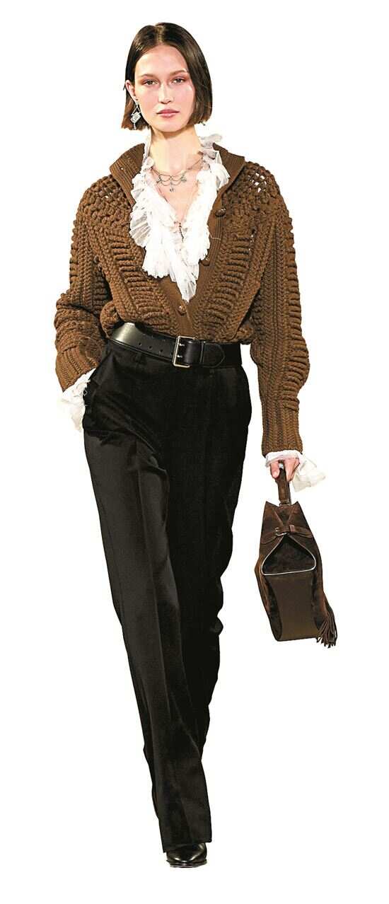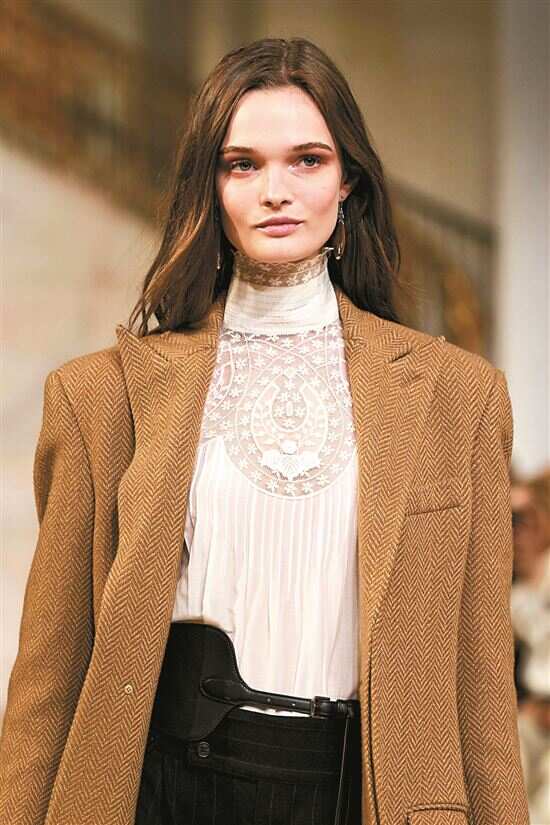▲独特领口设计让薄纱成为秋冬造型叠穿中的点睛之笔。