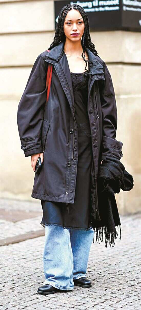 薄纱单品做外搭需注意内外穿搭间的松紧、长短配比以调节身材比例。