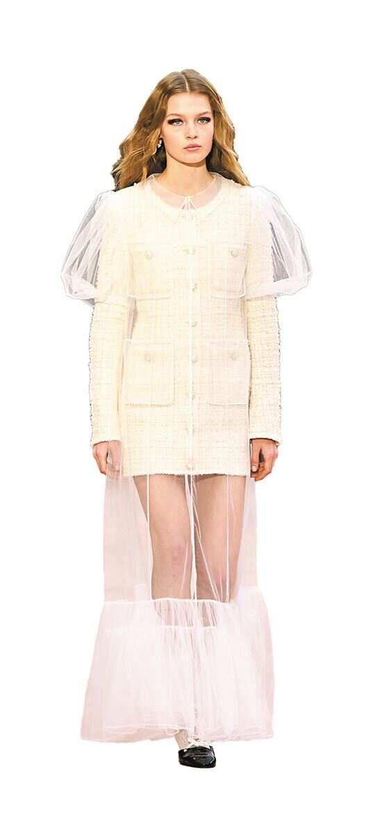 即使外搭厚重,薄纱加入就能展现轻巧特质。