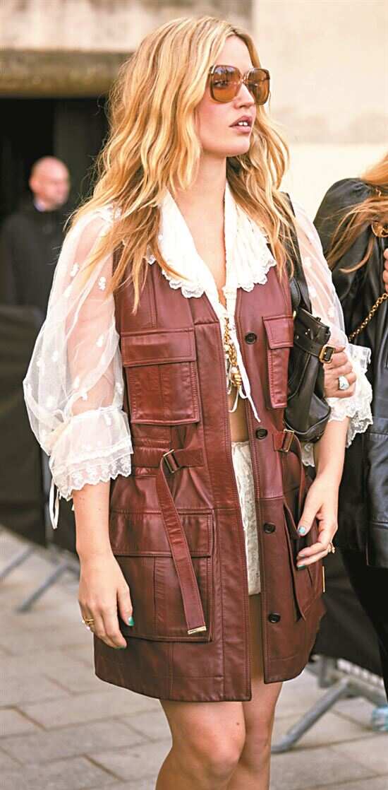 此外,薄纱单品既可做内搭延续夏日轻巧,又可外穿增加穿搭层次,透视感较强的薄纱单品已足够吸睛,内搭尽量选简约款式,避免过于复杂的图案抢了风头。内搭颜色与薄纱颜色相近或形成柔和对比会显得更高级,无论内搭还是外穿都可用腰带强调腰线,优化身材比例的同时也增加造型感。
