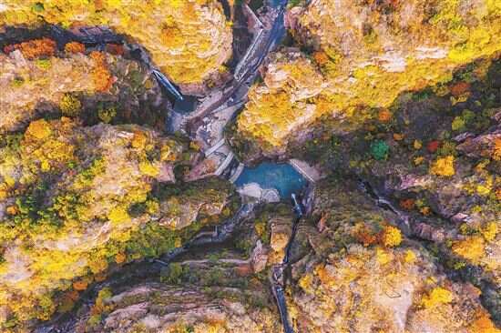 看秋日胜景,太行山脉可以算是一条“主动脉”;河南新乡的万仙山,就处于太行山南麓,远可眺望黄河,近可俯瞰牧野,距离新乡市区大约70公里,一小时车程,是国家4A级旅游风景区。