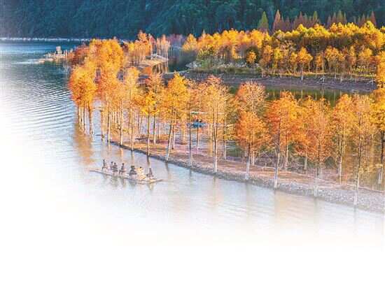 ■在青龙湾荡舟水面,感受水上红杉林之美。