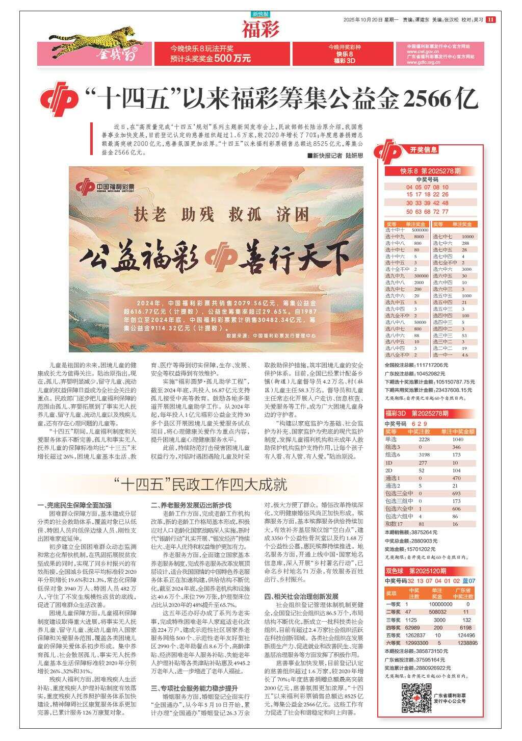 “十四五”以来福彩筹集公益金2566亿