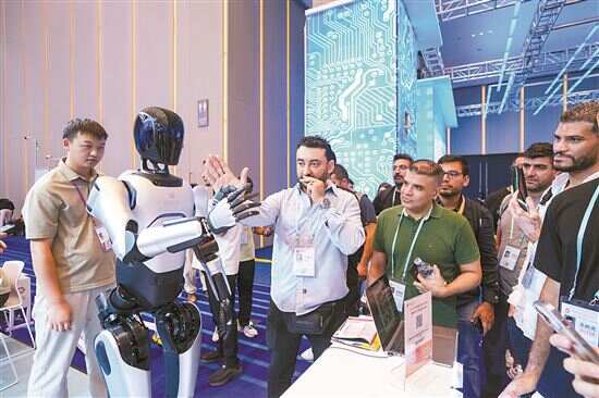 ■在广交会上,境外采购商被展区内的机器人所吸引。新快报记者 郭思杰/摄