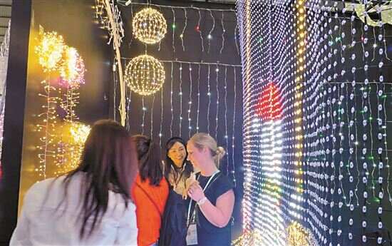 LED灯珠串成圣诞树、雪花、彩球,并随着灯光明暗如烟花般璀璨绽放……在主打节日用品的展区,嘉亿灯饰制品有限公司的展位吸引了多位采购商驻足。