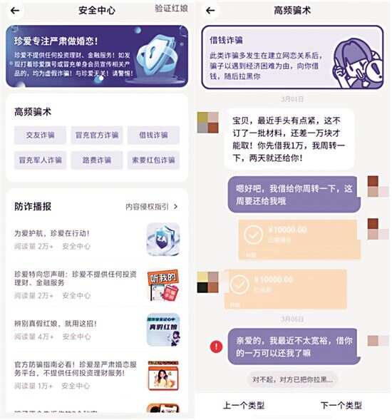事实上,近年来,珍爱网已在平台建设中建立起多重安全防护机制,包括注册实名认证、人脸识别等,最大程度保障用户身份真实性与信息安全。同时,珍爱网自研的“天网系统”可实现矩阵式策略覆盖,实时引擎与离线决策双轮驱动,高效精准查杀不诚信行为。旗下主打产品珍爱APP还通过定期推送网络安全提示、恋爱防骗指南、真假红娘辨别方法、常见诈骗套路解读等形式,向用户普及常见的诈骗手法与防范技巧,力求将安全防线前置到交友的每一个细节。