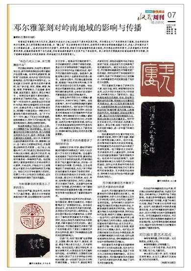 岭南地区有着悠久的文化历史,篆刻艺术在这片土地上也经历了漫长的发展历程。邓尔雅出生于广东东莞的名门望族,自幼受到良好的文化熏陶,其父亲邓蓉镜为晚清名儒,与 “黟山派” 创立者黄牧甫交往密切,这使得邓尔雅自幼便接触到篆刻艺术,并在八岁时就开启了自己的篆刻生涯 。在清末民初的时代背景下,西学东渐,传统艺术面临着新的机遇与挑战,邓尔雅在这样的环境中,以其卓越的才华和深厚的学养,在篆刻领域取得了非凡成就,对岭南地域的篆刻艺术发展产生了深远影响。深入研究邓尔雅篆刻对岭南地域的影响与传播,对于理解岭南篆刻艺术的发展脉络、传承地域文化具有重要意义。