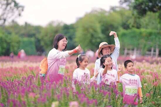 活动吸引800名参与者齐聚,分为个人组与亲子组,共同挑战5公里特色路线。路线以北门牌坊为起点和终点,沿途经过龙腾桥、飞龙桥、凌波桥等标志性点位,串联起花洲古渡与宫粉紫荆花道,让参与者在徒步中沉浸式领略海珠湿地的生态之美与人文韵味。