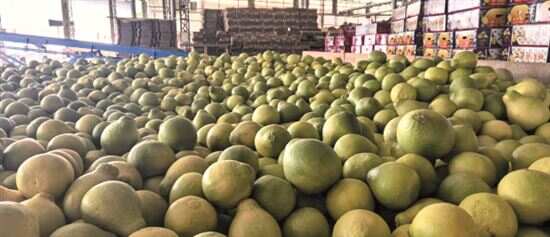 丙村镇红光村芬芬水果合作社即将发往海外的梅州金柚。