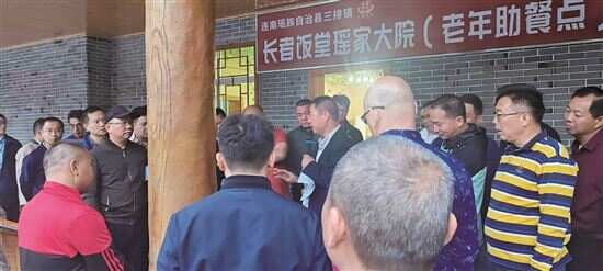 “党建红”引领“文化美”是瑶家大院蜕变的核心密码。项目初期,南岗村党总支书记唐春明带头奔走,工作队主动衔接后方资源、梳理政策清单,最终带动党员群众自筹160万元,争取扶持资金80万元;改造过程中,工作队与党员干部走访瑶寨老人、挖掘瑶族建筑技艺,从外观的瑶式图腾到内饰的刺绣纹样,每一处细节都流淌着瑶族文化基因;运营阶段,驻村第一书记陆景主动联系后方资源,广州市人社局大力支持,打造出三大独一无二的文化亮点:广州市轻工技师学院粤菜师傅团队开发的全国唯一的“九州宴”;连南独有的“万山朝王”特色酒文化;创办由村民主演的南岗“村晚”。