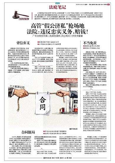 公司高管在中标后索要干股不成,反称竞标属“个人行为”导致公司被诉,18万元律师费由谁赔?投保时只见空白单,缴完保费才看到隐藏的免责条款,员工身故后50万元赔偿金谁来承担?签下20年加油站承包合同后经营亏损,想提前解约,另一方却主张继续履行,僵局何解?近日,广东省高级人民法院发布第二批服务保障民营经济高质量发展的8个典型案例,涉及商事纠纷多元联动化解、保护债权人合法权益等。