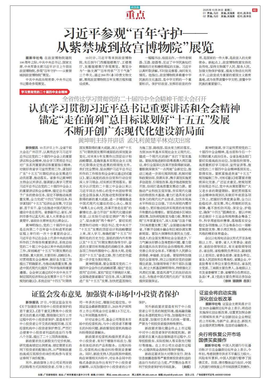 认真学习贯彻习近平总书记重要讲话和全会精神 锚定“走在前列”总目标谋划好“十五五”发展 不断开创广东现代化建设新局面