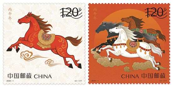 据新华社电 中国邮政10月29日发布《丙午年》特种邮票图稿,该套邮票将于2026年1月5日正式上市发售。