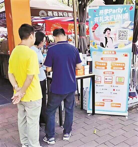 校园另一角的学生超市门口,建行广州天河支行的服务台刚刚搭起,就吸引了许多学生的目光。建行依托“建行生活”平台持续推进校园特色场景建设,将服务窗口延伸至校园生活第一线。“这么大的优惠券,太划算了,我这就叫舍友也来参与活动。”小周通过新下载的“建行生活”App,领取了20元的优惠券,在超市购物立减,享受到实实在在的优惠。