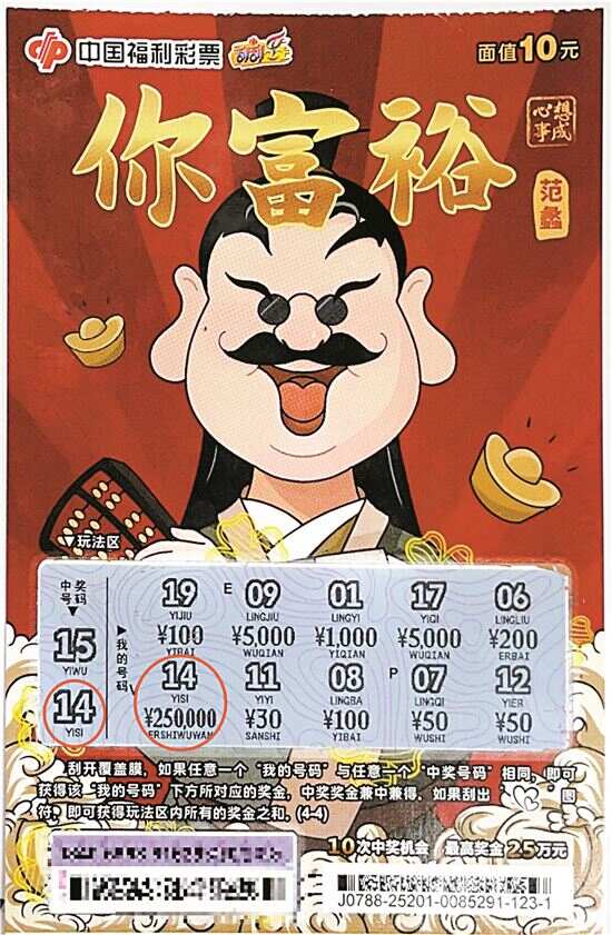 在众多彩票游戏中,刮刮乐即开票以其即买即刮即兑、玩法多样、趣味性强等特点,深受购彩者喜爱。其中“心想事成”刮刮乐即开票使用上海美术电影制片厂经典风格,将中国古代历史人物以诙谐、幽默的方式重现。每张画面显要位置均有三字祝福语:“你好美”“你开心”“你健康”“你富裕”,用最直接的祝福传递美好的意愿。