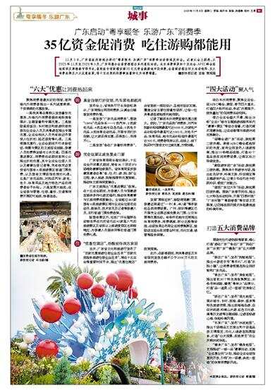 围绕吃住行游购娱等要素,精心打造“游在广东”“食在广东”“购在广东”“乐赏广东”“健身广东”五大消费品牌。