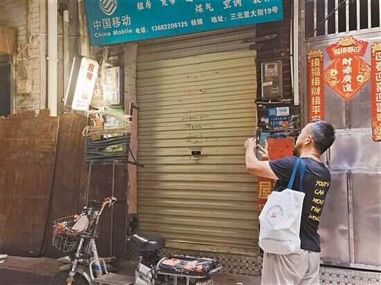 ■陈洲拍照记录三元里村的“房屋出租”灯牌。