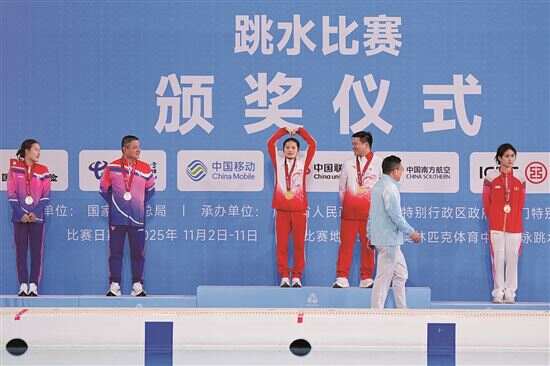■全运会跳水女子个人全能颁奖仪式。
