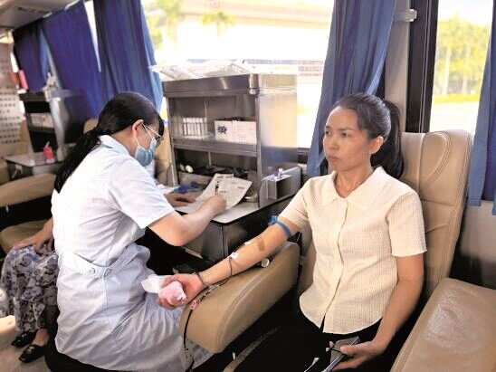 在剑英体育馆广场的献血车上,梅州市体彩中心党员、干部职工充分发挥模范带头作用,实体店代销者代表们踊跃参与,有序完成登记、验血与采血流程。本次活动共有16位体彩从业人员成功献血,累计献血量达4100毫升。