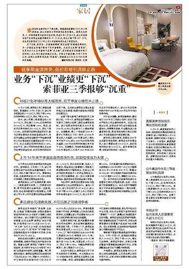 10月27日晚,索菲亚公布三季度业绩报告。数据显示,今年1月至9月,该公司实现营业收入70.08亿元,同比下滑8.46%;归母净利润6.82亿元,同比下滑26.05%。