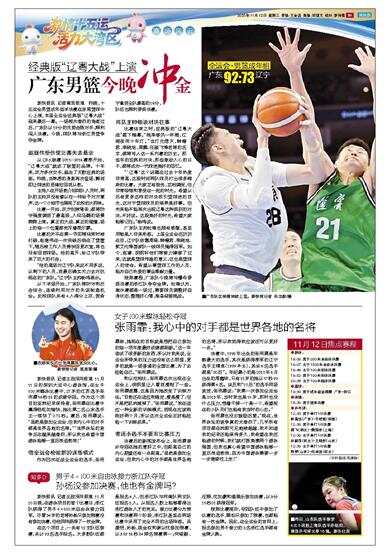 从下半场开始,广东队将防守和反击结合,连续利用对方的失误制造机会。此役球队共有4人得分上双,贺希宁拿到全队最高的16分,队伍也顺利晋级决赛。