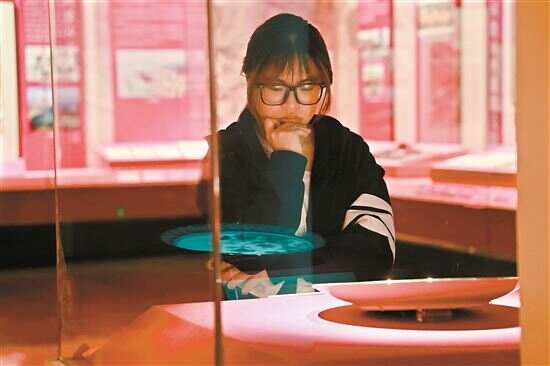 ■观众在认真地观看“百年湾区情——粤港澳大湾区近现代文物展”。