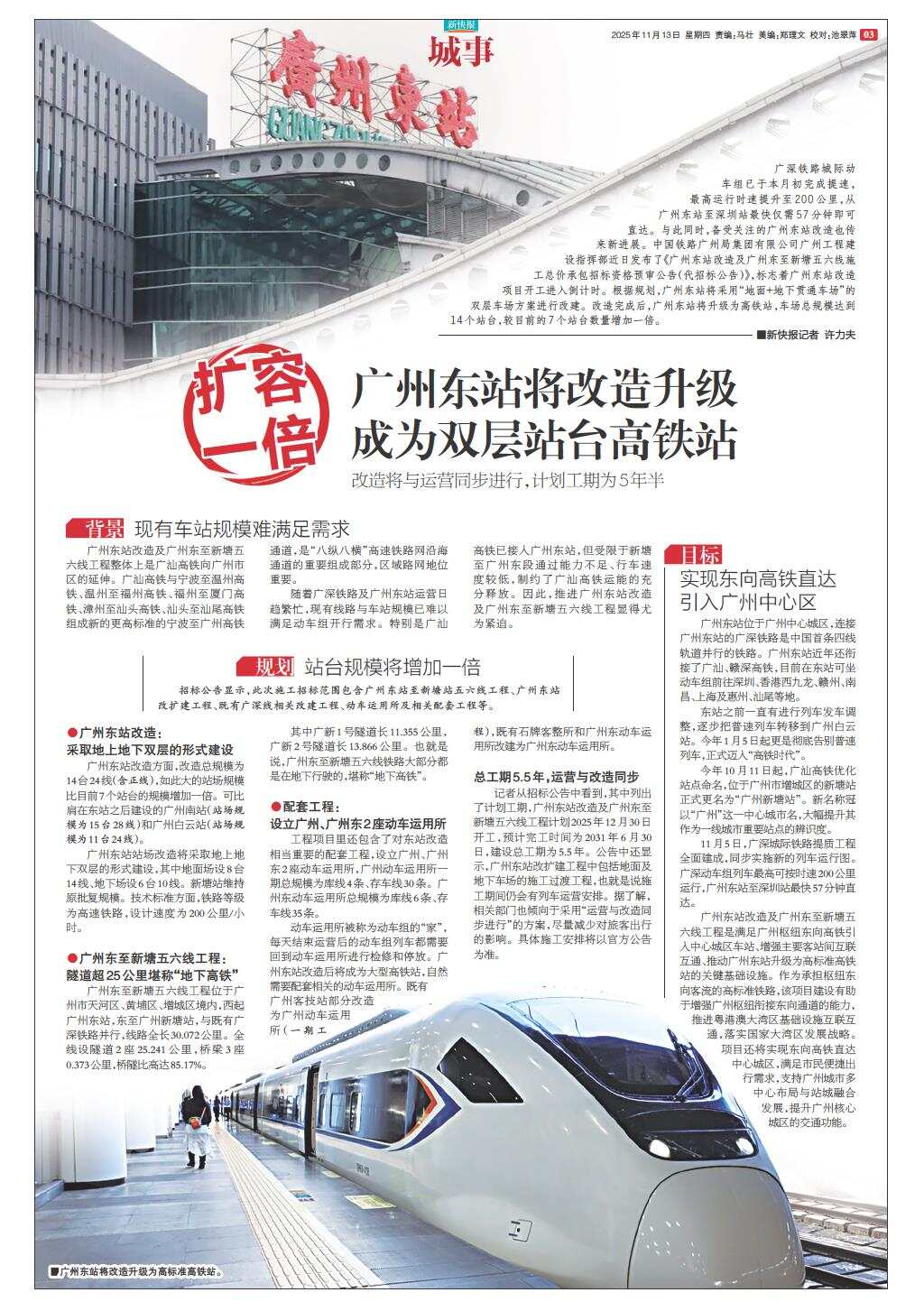 扩容一倍 广州东站将改造升级 成为双层站台高铁站
