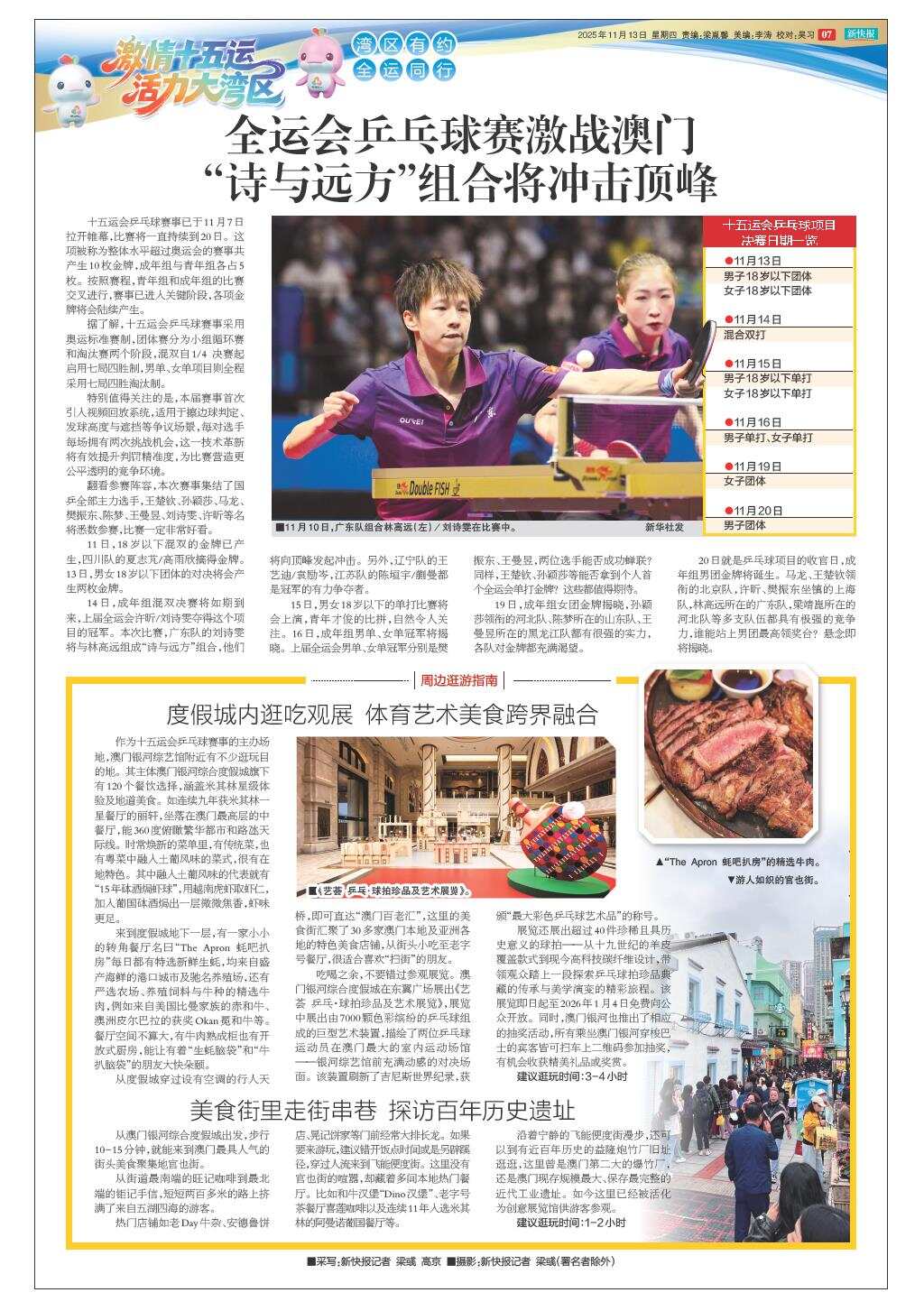 全运会乒乓球赛激战澳门 “诗与远方”组合将冲击顶峰