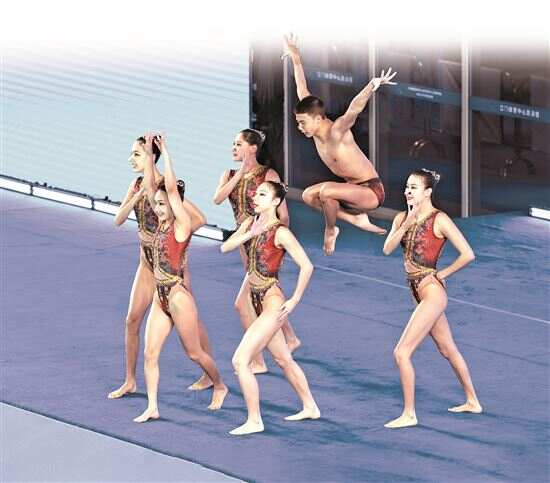 ■13日上午,十五运会花样游泳首场比赛“集体技术自选”项目开赛,来自北京、天津、广东、香港等10组参赛队伍上场比拼。