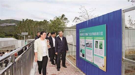 调研组来到太平镇毛崀村“灵芝鸡”生态养殖基地,为“广清产业帮扶创新项目”揭牌,并实地察看基地建设情况。今年9月正式投产的“灵芝鸡”生态养殖基地,是广清协作推动绿水青山转化为金山银山的实践典范。