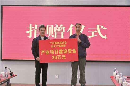 广州市海外联谊会为太平镇毛崀村捐赠产业项目建设资金30万元;