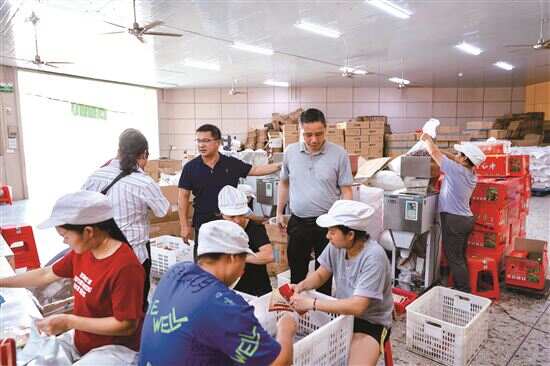 茂名市茂南区羊角镇禄段电商基地一楼,工人们正在忙碌地打包荔枝干、龙眼干等农特产品,门口堆满了准备运往全国各地的商品。三楼,是广东翔腾保健食品有限公司的加工车间,女工们正在各个岗位上熟练地挑拣、切片、包装。“以前在外地打工,村里有了这个基地后就回来就业了。”女工朱大姐告诉记者,在这里就业计件取酬,每个月有几千元收入,又能照顾家里的小孩,一到下课时间就下班去接孩子,“比外出打工强多了”。