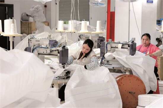 ■吨袋厂的女工实现了就业和照顾家庭两不误。