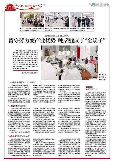像这样在吨袋厂就业的劳动妇女,有近30人,家门口的产业饭,让她们稳定地守住了业,也温馨地守住了家。