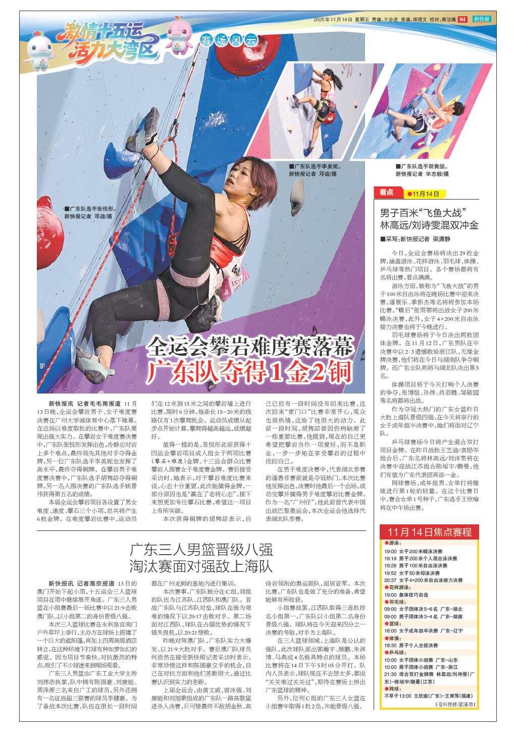全运会攀岩难度赛落幕 广东队夺得1金2铜